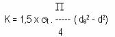 Từ kích thước của ống, tính tiết diện thành ống, và từ số liệu, tính lực (K) cần để tạo ra ứng suất dọc trục bằng 1,5 lần ứng suất làm việc cực đại cho phép của vật liệu chế tạo ống theo công thức sau đây: