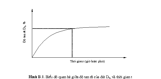 4.4. Vẽ biểu đồ quan hệ giữa độ tan rã DTr và thời gian t (trục tung biểu thị độ tan rã, trục hoành biểu thị thời gian, tham khảo ở hình B.1 ở phụ lục B). Từ biểu đồ này, xác định được độ tan rã cuối cùng của đất và thời gian tương ứng.