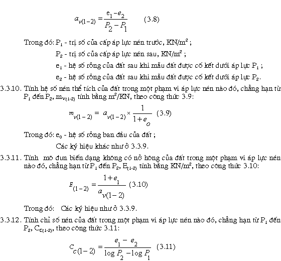 1. Tuỳ theo kết cấu, trạng thái của đất mà áp dụng các cấp áp lực nén có trị số phù hợp như điều 3.1.4.2 ;