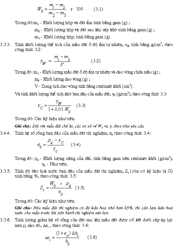 3.3.2. Tính độ ẩm tự nhiên của mẫu đất thí nghiệm, W0 tính bằng phần trăm (%), theo công thức 3.1: