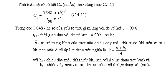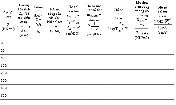 Theo công thức trên, tính toán hiệu chỉnh lượng lún của mẫu sau khi cố kết dưới các cấp áp lực nén áp dụng.