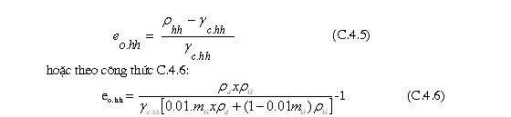C.4.5. Tính hệ số rỗng ban đầu e0.hh của mẫu đất chứa sỏi sạn, theo công thức C.4.5: