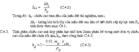 C.4.6. Tính quy đổi hệ số rỗng ei.hh tương ứng của mẫu đất chứa sỏi sạn sau khi cố kết dưới áp lực nén Pi nào đó, theo công thức C.4.7: