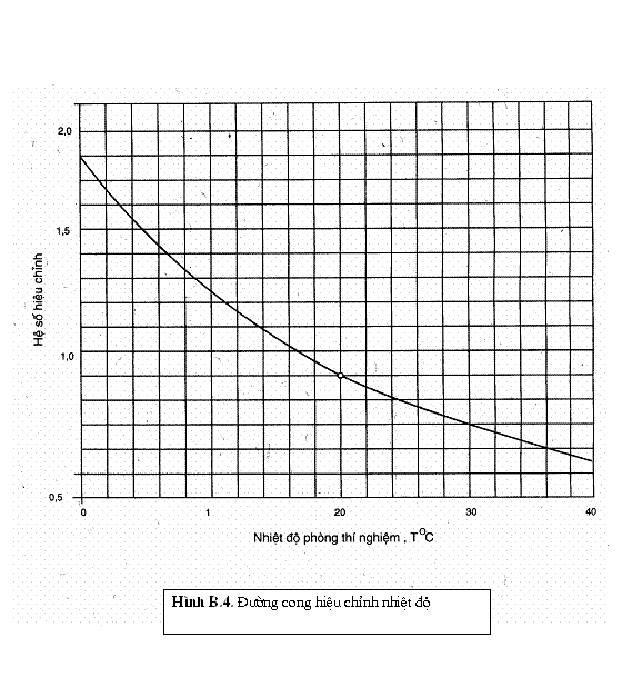 Ghi chú: Nếu nhiệt độ trung bình ở phòng thí nghiệm trong thời gian thí nghiệm chênh lệch hơn ± 20C so với 200C, thì giá trị CV tìm được cần hiệu chỉnh về trị số ứng với nhiệt độ 200C bằng cách nhân với hệ số hiệu chỉnh Rt tra cứu được ở hình B.4 phụ lục B.