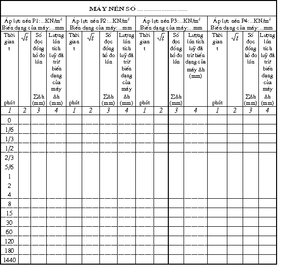 C.3.4. Tiến hành nén mẫu, theo dõi và và ghi chép số liệu, theo trình tự sau: