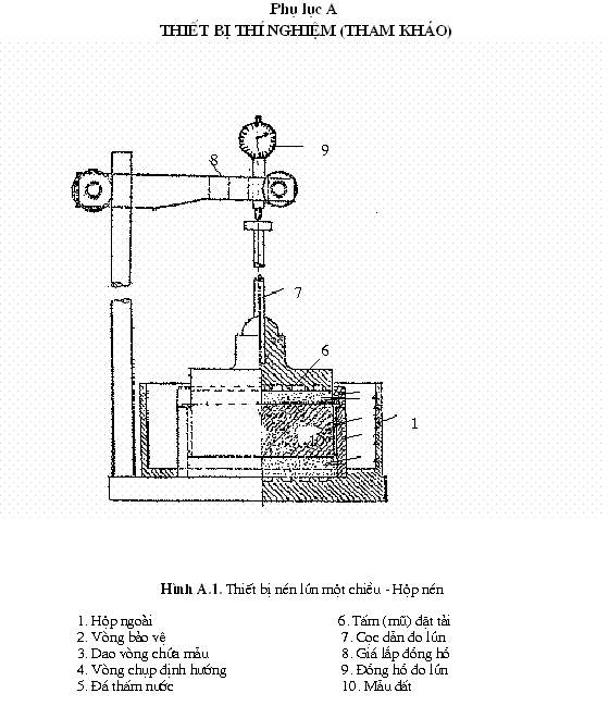 2.1. Thiết bị nén lún một chiều được mô tả khái quát ở hình A.1 phụ lục A, gồm các bộ phận sau:
