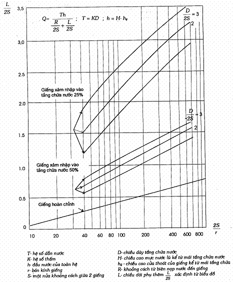 3.6. Lưu lượng xả của giếng trong mùa lũ được tính theo công thức của Hiệp hội Kỹ sư Hoa Kỳ nêu trong phụ lục K. Hiệu quả giếng tính theo lưu lượng xả trong mùa lũ như sau: