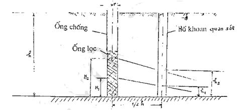 Hình 6. Sơ đồ thí nghiệm đổ nước trong hố khoan theo phương pháp cột nước thay đổi – Phương pháp Barenblat và Setxtacôp
