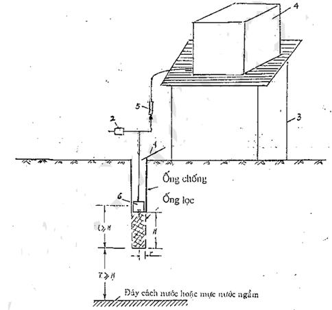 – Ống lọc đặt vào đoạn đổ nước (chiều dài:………cm), đường kính:…….(mm), các thông số kỹ thuật khác…….), ống chống vách phần hố khoan bên trên đoạn đổ nước: đường kính……., chiều dài:……….