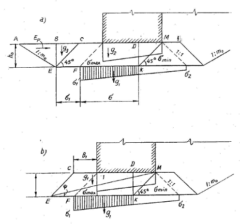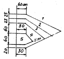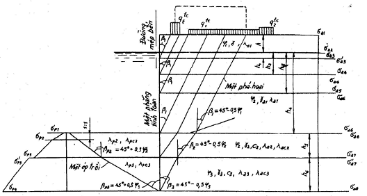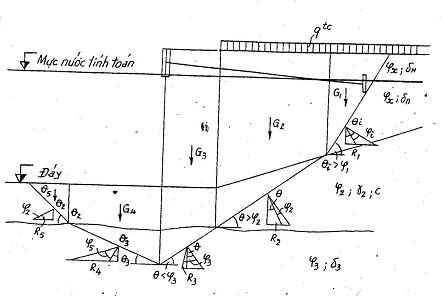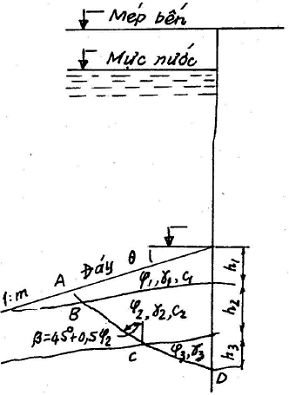 – mặt 3 – qua điểm 3, là giao điểm giữa mặt phá hoại với mực nước tính toán;