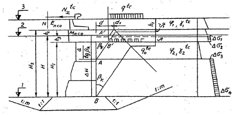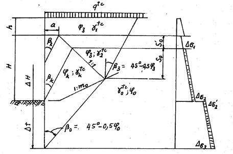 1. Dựng biểu đồ tổng của áp lực chủ động và bị động của đất có xét cả hoạt tải theo quy định ở các điểm 13.27, 13.31 và 13.32 và 13.34.