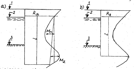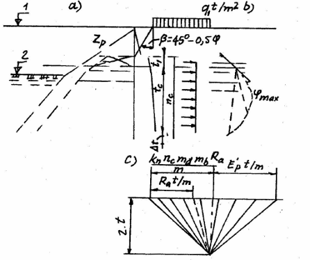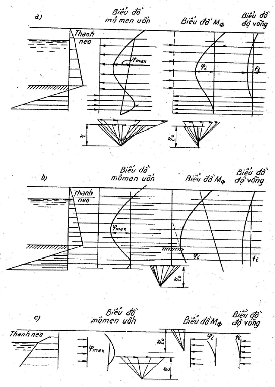 Việc xác định độ võng của tường đóng trong đất được tiến hành theo trình tự sau (xem hình vẽ)