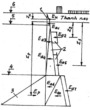 1. Áp lực bị động của đất trước tường neo hoặc bản neo nằm gần tường mặt được xác định bằng tổng của hai thành phần sau: