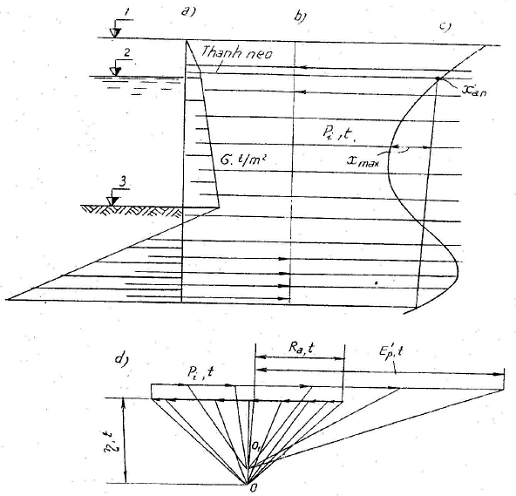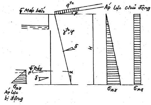 Để tính toán tường mặt của bến cừ sẽ lấy trị số áp lực bị động bé hơn trong 2 trị số sau đây:
