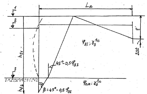 – mặt 2 – qua điểm 2, là giao điểm của tim tường neo với mặt phân cách giữa hai lớp đất khác nhau;