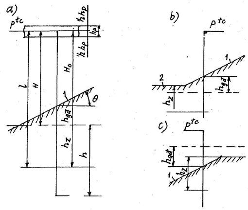r – góc nghiêng của mặt đất đắp so với đường nằm ngang; r là dương khi dốc nâng lên, r là âm khi dốc hạ xuống.
