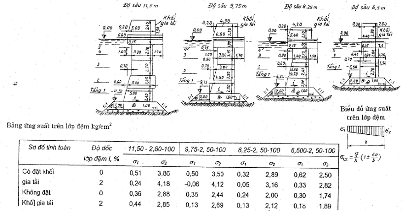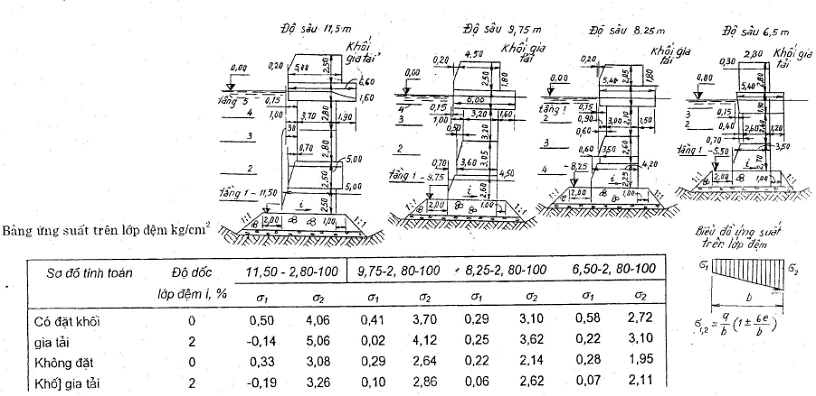 1. Chiều cao H của bến bằng tổng các giá trị tuyệt đối của cao độ đáy bến và cao độ mép bến;