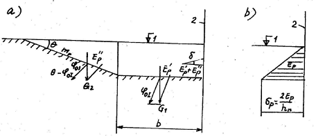 b) Lực kháng bị động do trọng lượng đất đè lên mặt nghiêng của lăng thể ép trồi.
