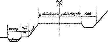 Điều 3.1. Chiều rộng nền đường đào hoặc đắp là khoảng cách 2 mép của nền đường (không kể chiều rộng rãnh trong nền đào (Xem hình 3.1). Khi nền đắp cạnh mương thủy lợi thì chân mái đường đắp phải cách mương 1 m (tạo thành một thềm).