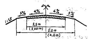 – Nền mặt đường phải có độ dốc ngang về hai phía, trị số dốc này bằng 4% (xem hình 3.7).