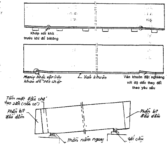 Việc chế tạo sẵn bệ kê cho phép tránh được những phiền phức về ván khuôn, nhưng phải lắp đặt chính xác một tấm bản có độ dày vừa đủ (không nhỏ hơn 6cm) phải đặt những tấm kê đệm để giữ chặt tấm bản chế tạo sẵn này trong quá trình đổ bê tông dầm cầu.