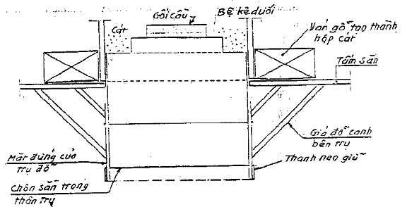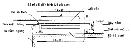 Bệ kê đổ tại chỗ, sau khi đã làm xong đỉnh mố trụ, bê tông đổ ngang bằng mặt với khuôn gỗ theo thước kiểm chuẩn.