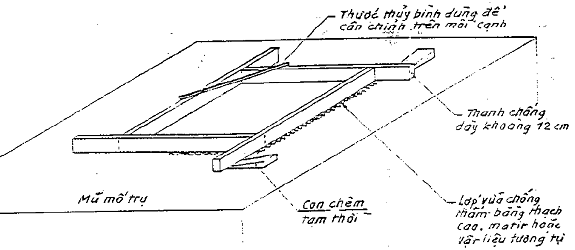3) Tạo lập một khung bằng các thanh gỗ kín chu vi đặt gối. Phải chống khe hở giữa thanh gỗ và mặt kê gối bằng cách trét mát-tít, thạch cao hoặc vật liệu hỗn hợp khác.