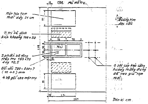 – Đục vỡ dăm phần bê tông đỉnh mố trụ ở phạm vi đổ bệ kê.