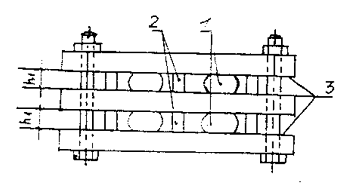 2.1. Gối cầu cao su cốt bản thép dùng trong các công trình cầu đường ô tô gồm nhiều lớp cao su dày 5mm và nhiều tấm bản thép dày 2mm đặt xen kẽ và gắn chặt với nhau. (Cấu tạo gối cầu cao su cốt bản thép theo hình 1).