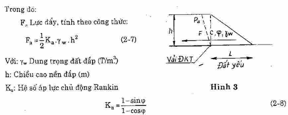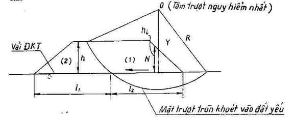 2.2.1.2. Kiểm toán điều kiện ổn định trượt đất đắp trên vải địa kỹ thuật theo công thức sau:
