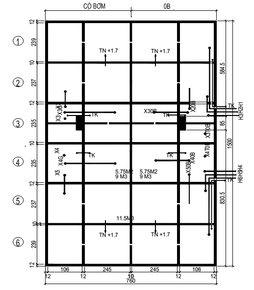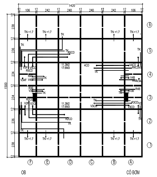 – Bơm nước vào ô 4 và ô 40B lần lượt cân bằng (mỗi ô 1.5 min) cho đến khi đầy hộp đáy 2 ô này và cao hơn sàn 2 là 0,3 m.