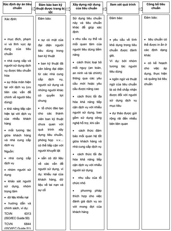 0.1 Ngày càng có nhiều tiêu chuẩn về dịch vụ được xây dựng. Tiêu chuẩn này được soạn thảo để hỗ trợ những người xây dựng tiêu chuẩn trong các lĩnh vực dịch vụ để xem xét các yêu cầu của người tiêu dùng. Tiêu chuẩn này chi tiết hóa mục đích của tiêu chuẩn dịch vụ, đề cập trong tài liệu của ISO/IEC Người tiêu dùng và tiêu chuẩn – Hướng dẫn và nguyên tắc về sự tham gia của người tiêu dùng trong xây dựng tiêu chuẩn [25]. Khi đề cập đến mối quan tâm chính của người tiêu dùng, các tiêu chuẩn có thể hỗ trợ bằng cách thể hiện sự đồng thuận về kiến thức tốt nhất và kinh nghiệm sẵn có trên thế giới.