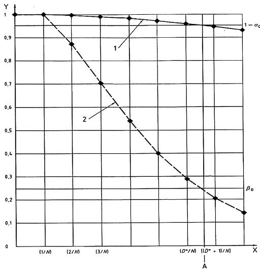Tại điểm của mức chất lượng kỳ vọng những phương án này trùng với các giá trị xác suất chấp nhận khác nhau. Tiêu chuẩn này quy định cho mỗi giá trị pNQL giới hạn trên của khoảng mức không phù hợp một phương án ưu tiên trong tập hợp các phương án chấp nhận được. Phương án ưu tiên có xác suất chấp nhận tại mức chất lượng này là không thấp hơn 0,95 và cỡ mẫu nhỏ nhất có thể có.