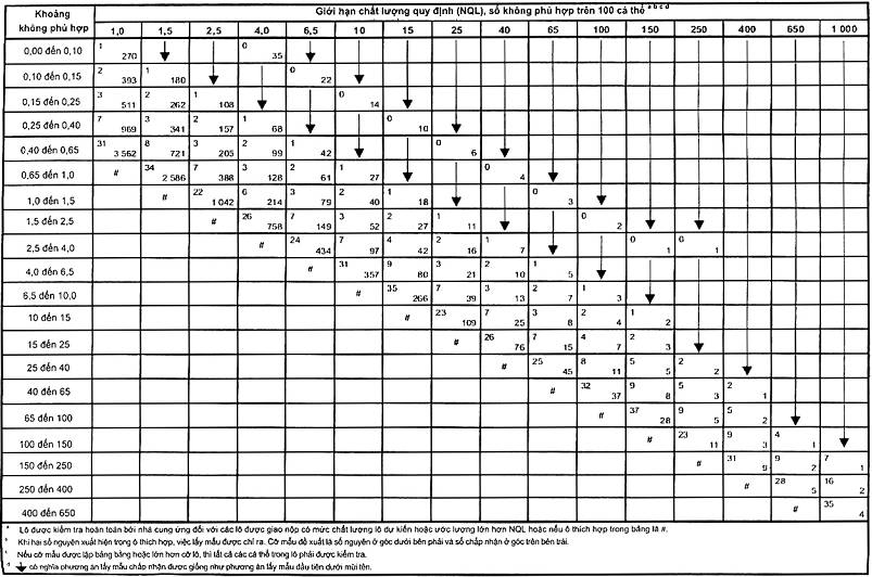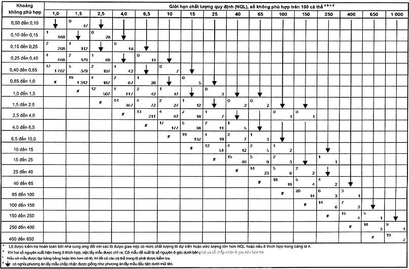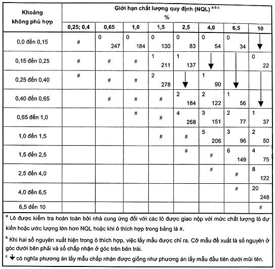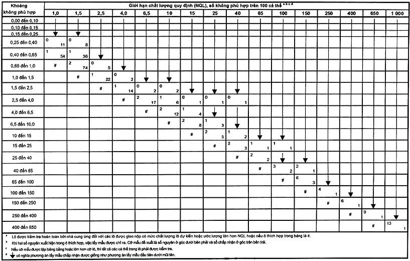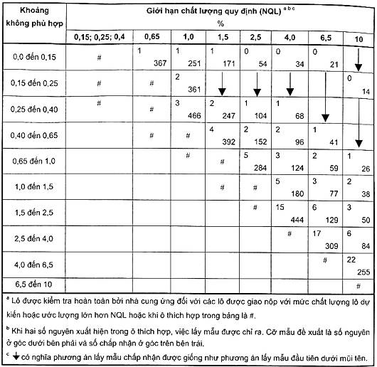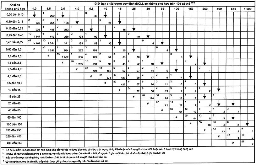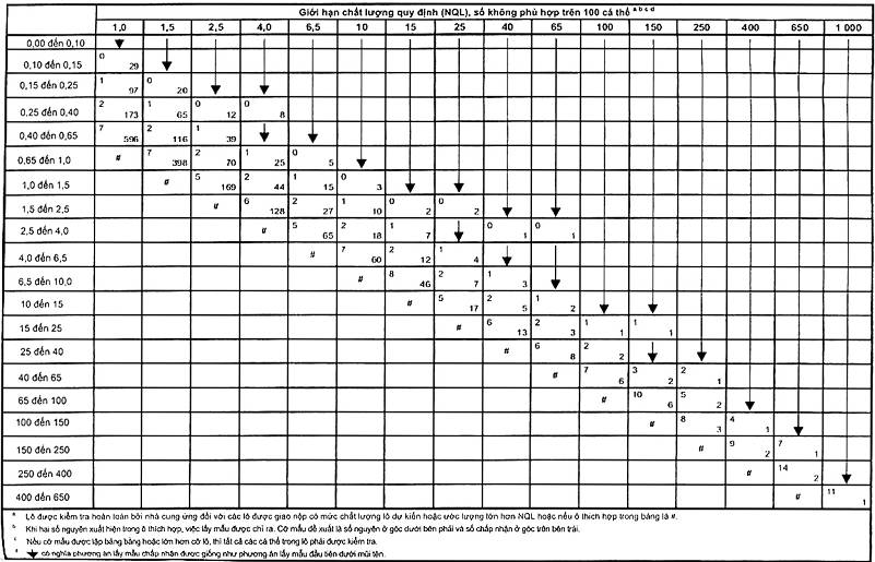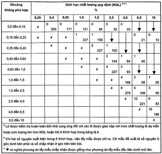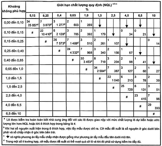 Danh mục các phương án lấy mẫu một lần được đưa ra, xác định theo giới hạn chất lượng quy định (NQL).
