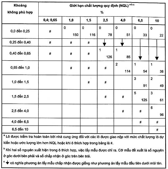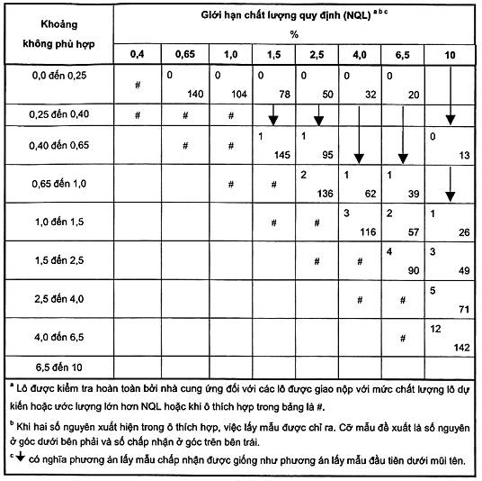 trong đó pNQL là giới hạn trên của khoảng không phù hợp trong bảng lấy mẫu của nhà cung ứng,