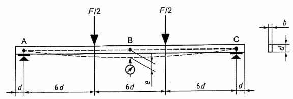 Thử nghiệm độ bền uốn theo mặt phẳng được thực hiện bằng cách sử dụng thiết bị gia tải tại hai điểm cách gối đỡ một phần ba nhịp như trong TCVN 8164 (ISO 13910) (xem Hình 3). Nhịp thử nghiệm ít nhất phải gấp 18 lần chiều cao mặt cắt ngang [kích thước d trong Hình 1 b)]. Kích cỡ tối thiểu của mẫu thử không được nhỏ hơn kích cỡ kết cấu nhỏ nhất được sản xuất.