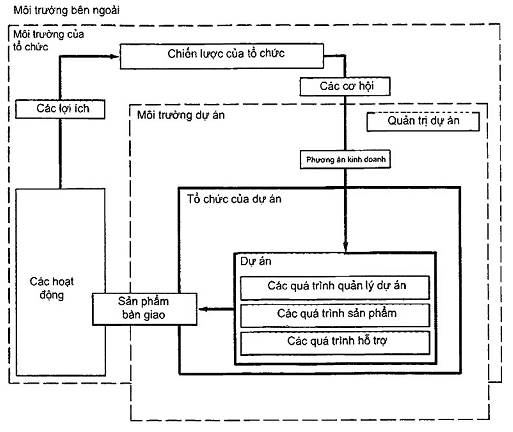 Hình 1 cho thấy các khái niệm về quản lý dự án liên quan với nhau như thế nào. Chiến lược của tổ chức xác định các cơ hội. Các cơ hội này được đánh giá và cần được lập thành văn bản. Các cơ hội đã được lựa chọn sẽ được phát triển thêm trong tài liệu về phương án kinh doanh hoặc tài liệu tương tự khác và có thể dẫn tới một hoặc nhiều dự án với các sản phẩm bàn giao. Các sản phẩm bàn giao này có thể được sử dụng để thực hiện những lợi ích. Những lợi ích này có thể là đầu vào để thực hiện và phát triển hơn nữa chiến lược của tổ chức.