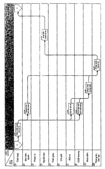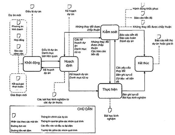 Các mũi tên thể hiện trình tự lôgic của các quá trình. Quyết định về việc các quá trình nào là cần thiết và theo trình tự nào là do tổ chức, nhà quản lý dự án, nhóm quản lý dự án hoặc nhóm dự án đưa ra. Bất kỳ quá trình nào cũng có thể được lặp lại.
