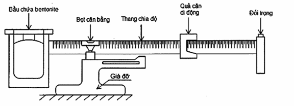 Khối lượng của một thể tích không đổi dung dịch bentonite được đánh giá thông qua việc di chuyển của một quả cân di động dọc theo một thang chia độ tăng dần trên cán cân của dụng cụ cân tỷ trọng. Khối lượng riêng của dung dịch bentonite sau đó được đọc trực tiếp từ thang chia độ sau khi cân được cân bằng.