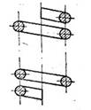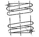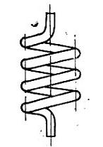 Hình 5. Lò xo kéo có áp lực giữa các vòng xoắn chế tạo bằng dây mặt cắt tròn có các vòng móc mở trái chiều nhau và cùng nằm trên một mặt phẳng.
