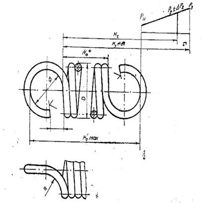H1, H2, H3 – Chiều cao (dài) lò xo dưới tác động của tải trọng;