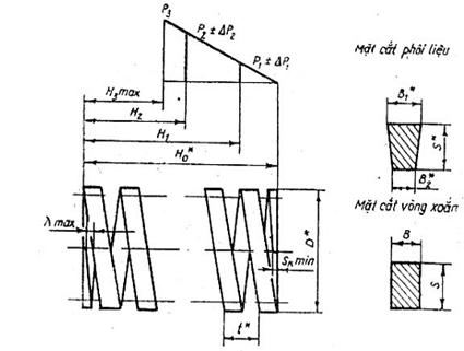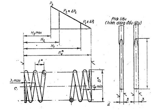 Chú thích: Ký hiệu các thông số H, F, φ M, t, s, P, a, j có kèm theo chỉ số 1 dùng để chỉ đại lượng ứng với độ biến dạng đầu tiên, chỉ số 2 cho độ biến dạng làm việc, chỉ số 3 cho độ biến dạng tối đa của lò xo.
