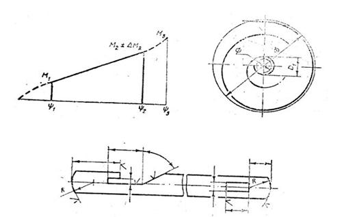 13. Đối với lò xo xoắn ốc phẳng có các thông số kiểm tra lực, thì ngoài biểu đồ, trên bản vẽ còn ghi cả sơ đồ kẹp lò xo có ghi các kích thước của trục và hộp bọc ngoài (hình 6).