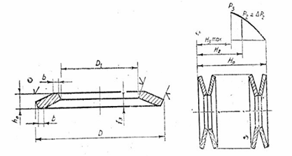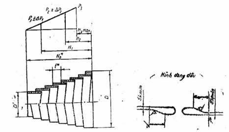 14. Đối với chồng lò xo đĩa có các thông số kiểm tra lực, thì trên bản vẽ ngoài biểu đồ còn phải có sơ đồ bố trí lò xo trong chồng có ghi rõ quan hệ giữa lực và độ biến dạng đối với tất cả chồng (hình 7). Nếu trong cơ cấu, chỉ dùng một đĩa lò xo có các thông số kiểm tra lực thì có thể vẽ biểu đồ cho một đĩa lò xo đó.