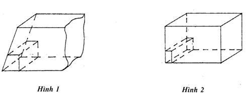 2.2.1 Đối với sản phẩm hình lăng trụ thì cắt mẫu hình lăng trụ bất cứ ở góc nào của đáy sản phẩm. Chiều cao của mẫu thừ là chiều dày của sản phẩm (đối với sản phẩm có chiều dày lớn hơn 80mm, thì chiều cao mẫu thử lấy bằng 80mm). Nếu sản phẩm là lăng trụ thẳng lập phương thì mặt cắt vuông góc với chiều cao phải là hình vuông (hình 1). Nếu sản phẩm có góc nhọn hoặc tù ở 2 mặt đáy thì mặt cắt vuông góc với chiều cao có thể là hình thang (hình 2).