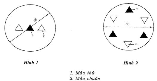 3.2. Mẫu thử và mẫu chuẩn phải đặt cách đều nhau và cách đều chân đế tròn (hình 1).