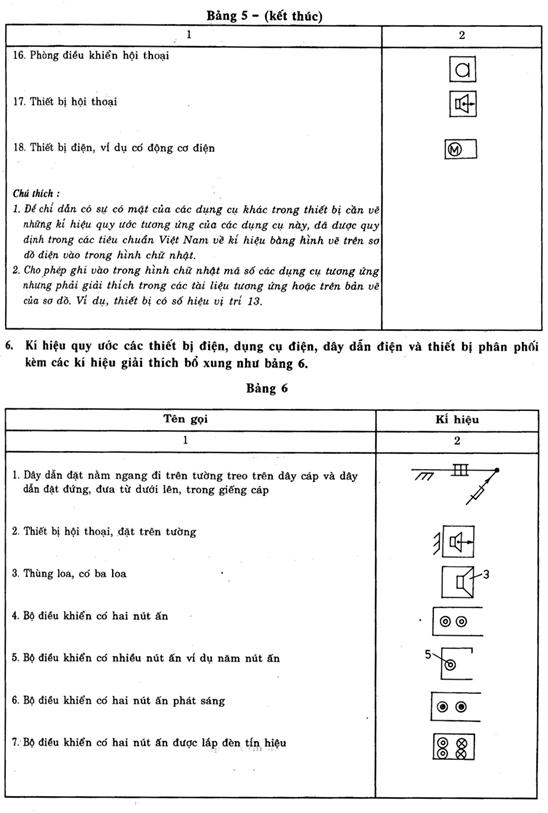 Tiêu chuẩn Việt Nam TCVN 185:1986 (ST SEV 3217- 81 ) về hệ thống tài liệu thiết kế – ký hiệu bằng hình vẽ trên sơ đồ điện, thiết bị điện và dây dẫn trên mặt bằng đã được thay thế bởi Tiêu chuẩn quốc gia TCVN 7922:2008 về Ký hiệu bằng hình vẽ trên sơ đồ .