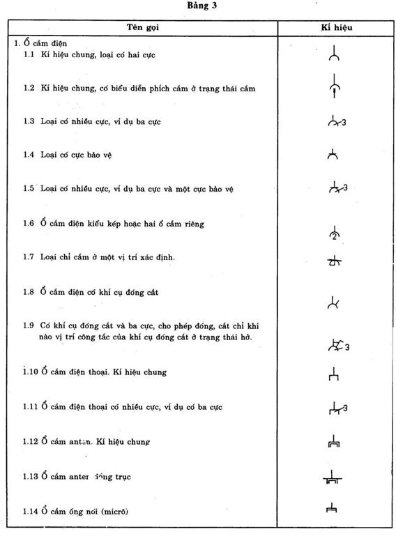 3. Kí hiệu quy ước của ổ cắm tiếp xúc như bảng 3