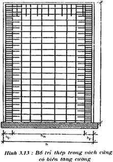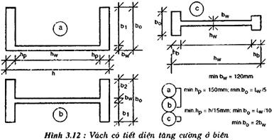 – Cần có biện pháp tăng cường tiết diện ở khu vực biên các vách cứng (hình 3.12). Các vách đặc có biên tăng cường được cấu tạo theo hướng dẫn ở hình 3.13.
