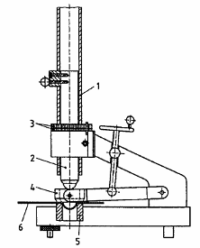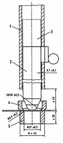 4.1.4. Ống định hướng thẳng đứng (xem Hình 1 và 2), để hướng cho tải trọng chính (4.1.2) rơi vuông góc với tấm thử. Ống định hướng có vạch chia theo milimét để chỉ rõ khoảng cách trên bề mặt của tấm thử.